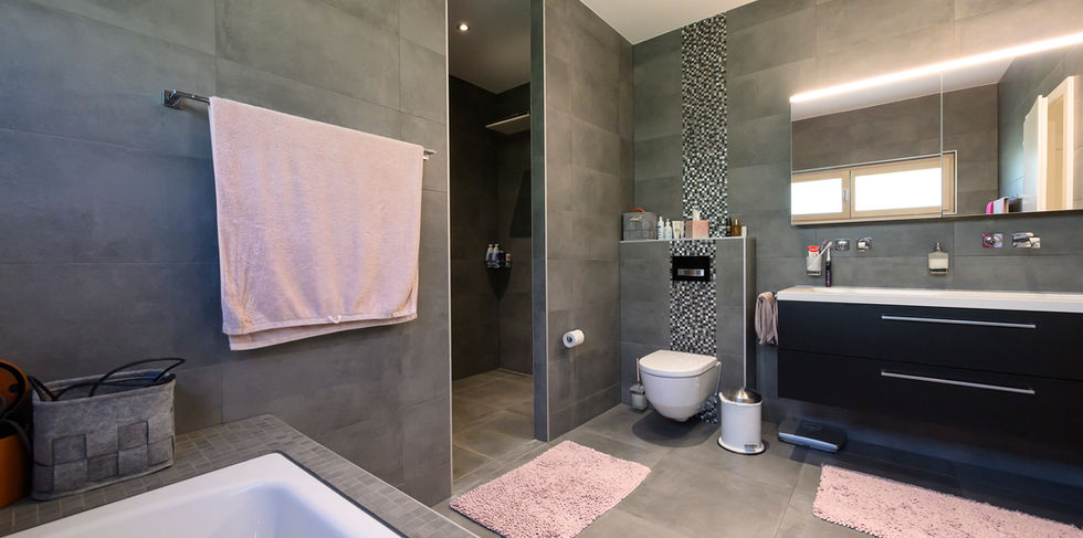 Rez-de-chaussée : Suite parentale avec dressing et salle de bain/douche privative, espace cuisine/séjour lumineux de 74 m², économat, wc visiteurs, entrée avec armoires encastrées